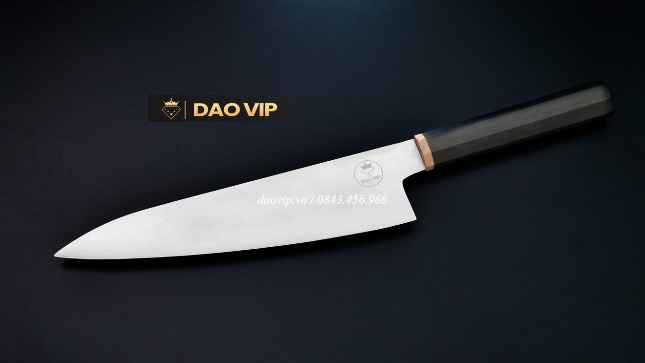Cán dao bằng gỗ Mun hình bát giác, khâu đồng sang xịn