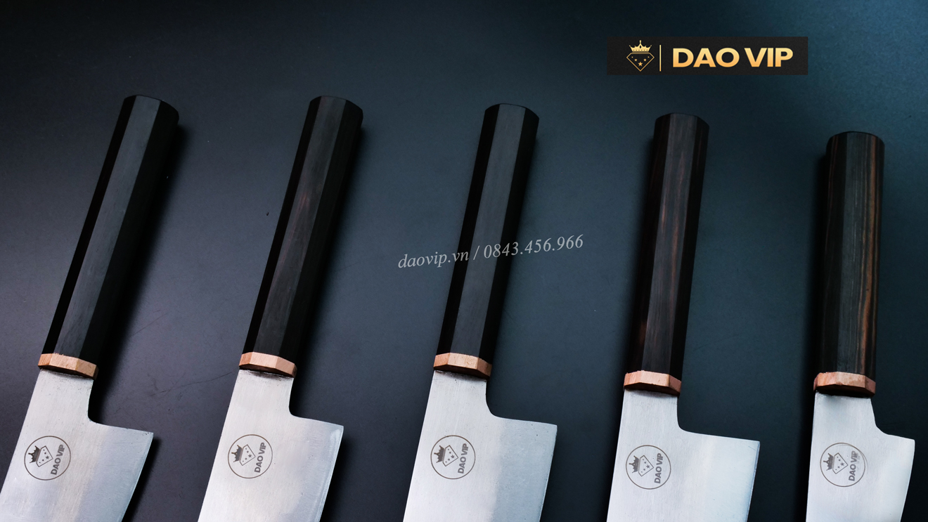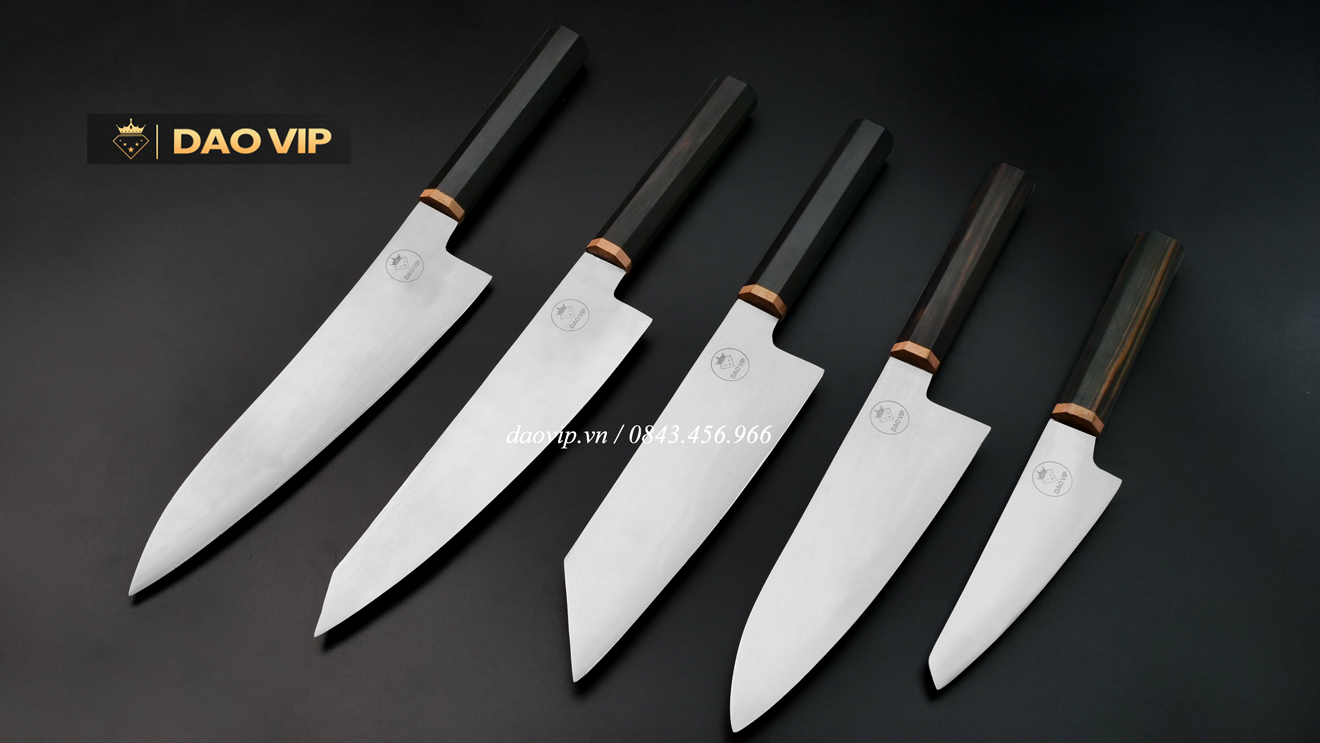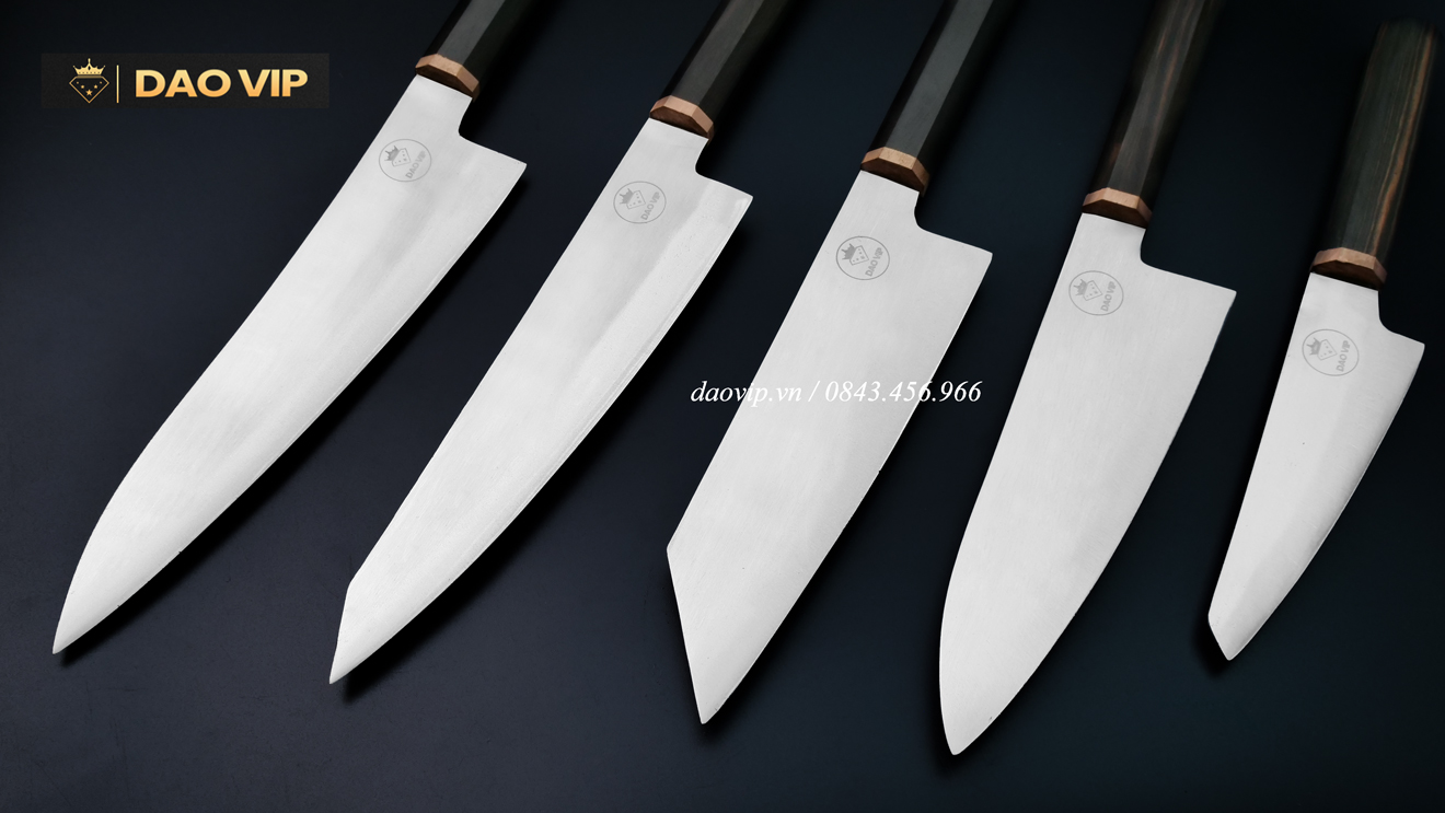 - Bộ dao 5 món thép không rỉ DAO VIP DV06 được thợ rèn giỏi của DAO VIP rèn hoàn toàn thủ công, đảm bảo tỉ mỉ đến từng chi tiết. Dao đạt được độ sắc bén cao.