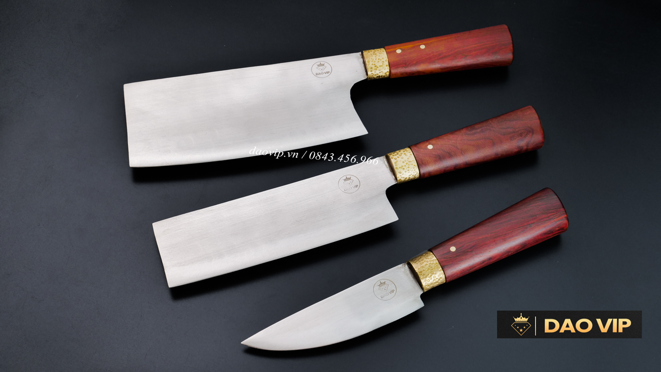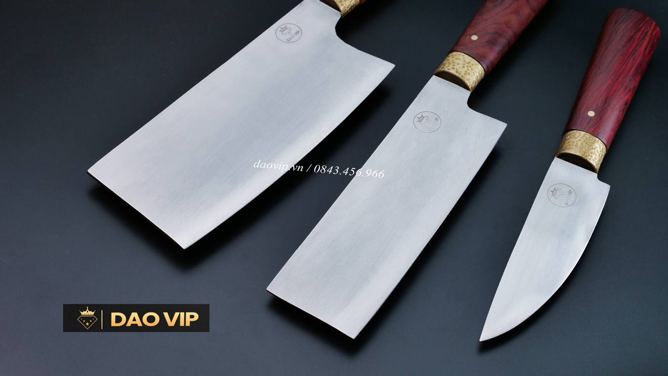 - Bộ dao 3 món thép không rỉ DAO VIP DV04 được thợ rèn giỏi của DAO VIP rèn hoàn toàn thủ công, đảm bảo tỉ mỉ đến từng chi tiết. Dao đạt được độ sắc bén cao.