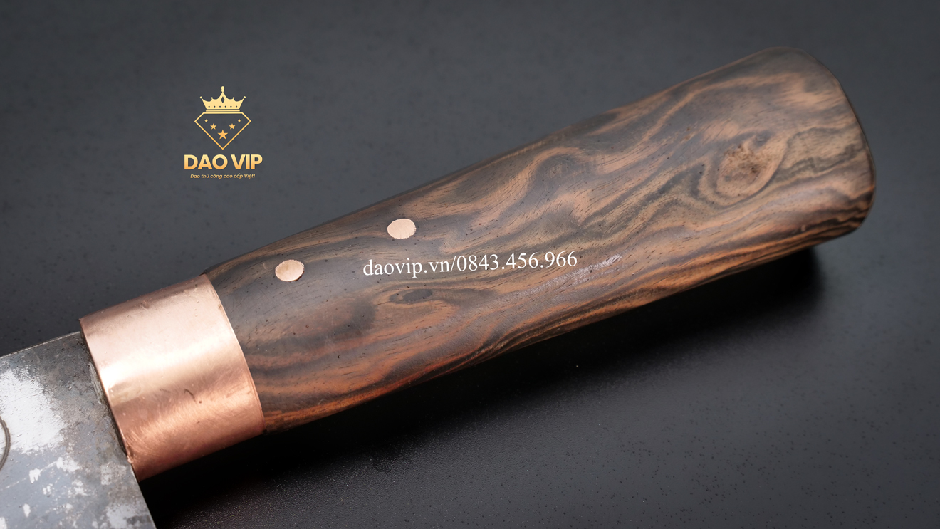 Cán dao bằng gỗ mun hình ovan, khâu đồng sang xịn