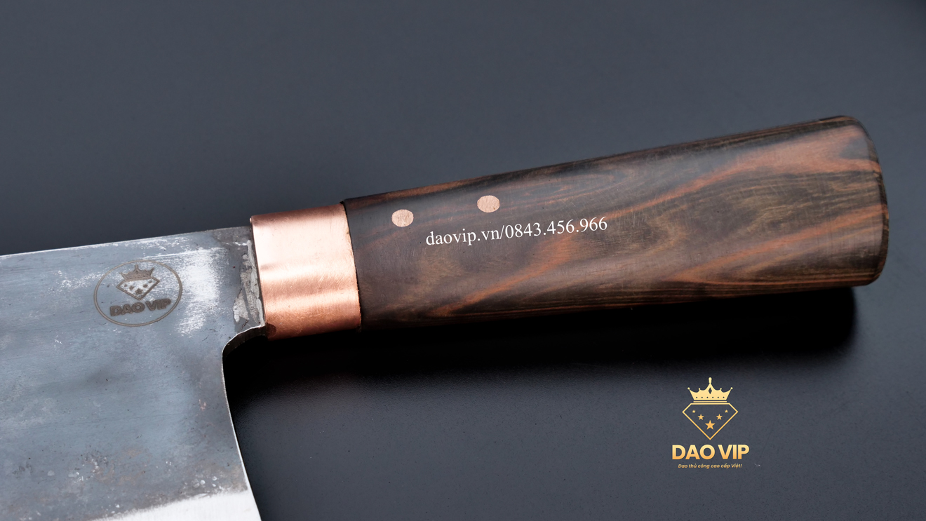 Cán dao bằng gỗ mun hình ovan, khâu đồng sang xịn