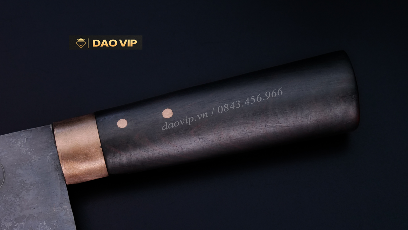 Cán dao bằng gỗ mun hình ovan, khâu đồng sang xịn