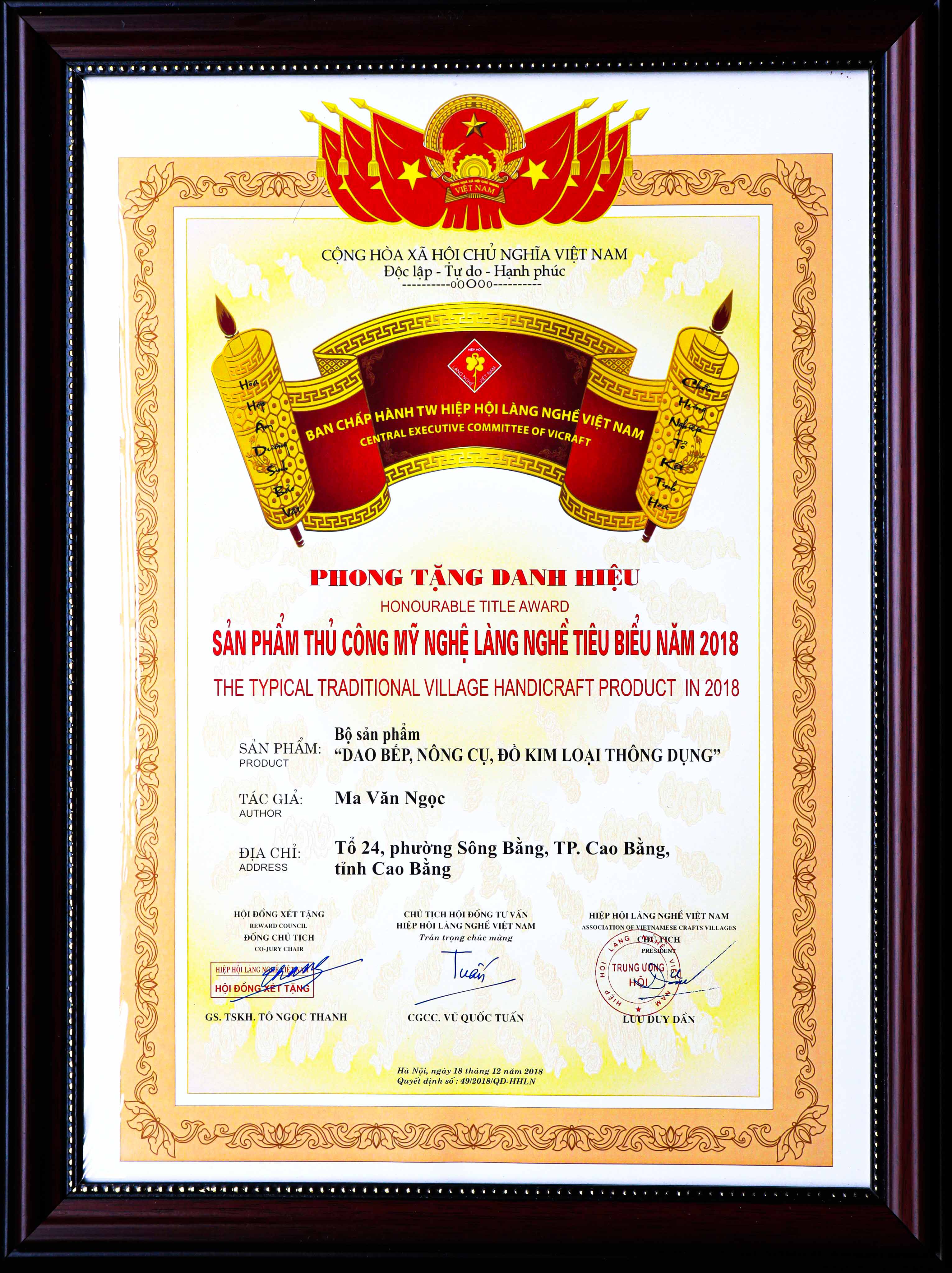- Sản phẩm đạt giải “Thủ công mỹ nghệ làng nghề tiêu biểu năm 2018” do Hiệp hội làng nghề Việt Nam phong tặng