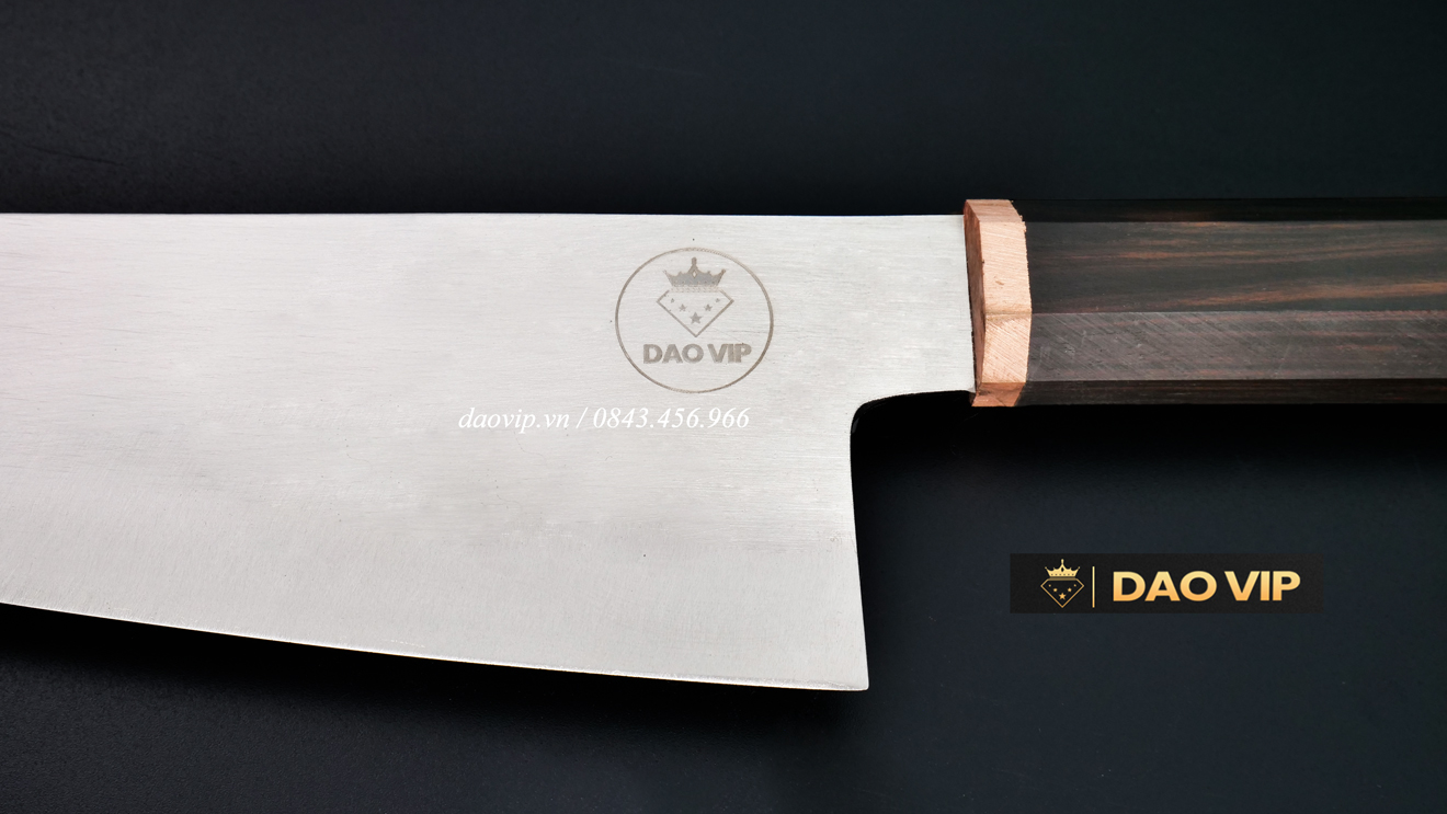 Cán dao bằng gỗ mun hình bát giác, khâu đồng sang xịn