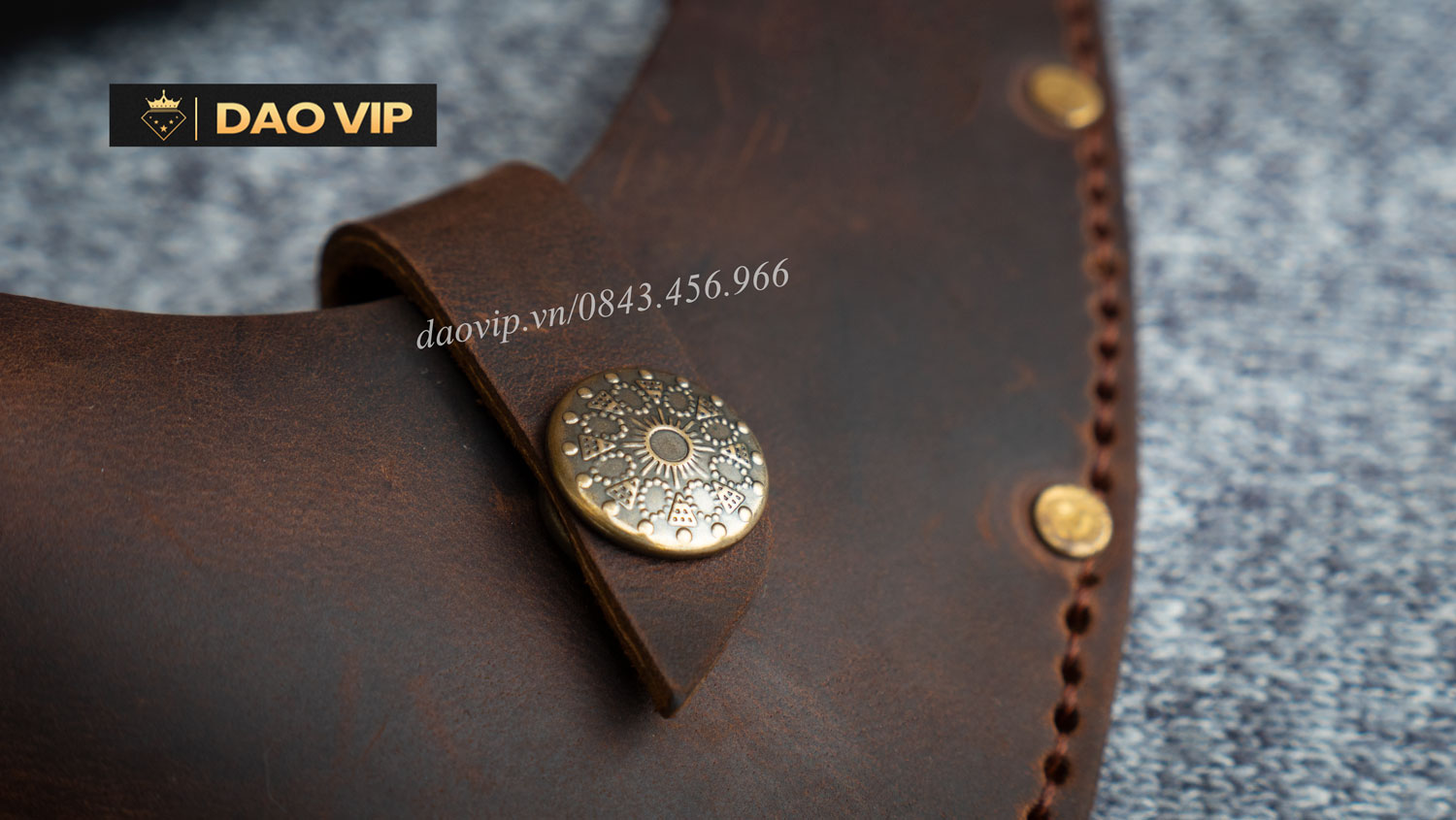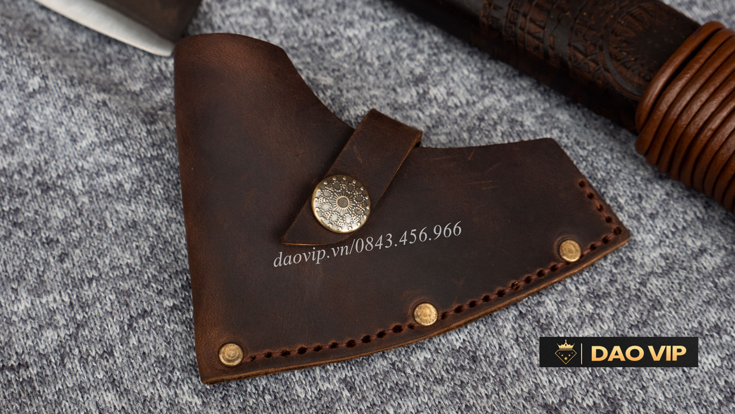 Bao rìu được làm thủ công từ da bò tự nhiên , được thợ đo ướm may cắt tỉ mỉ bằng tay nên rất chắc chắn, sang đẹp. Phần bao da có cúc đóng mở dễ dàng khi sử dụng.